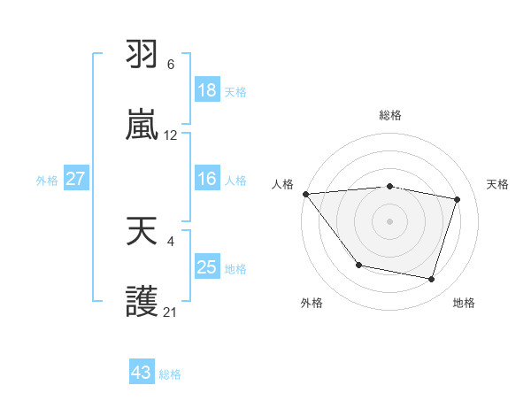 羽嵐 天護さんを姓名の画数から五運を鑑定