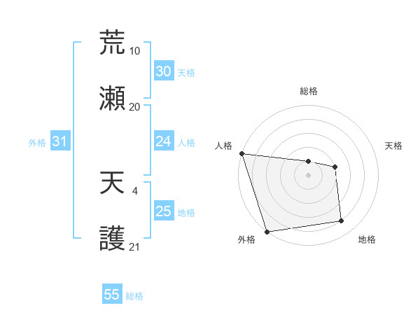 荒瀬 天護さんの外格は31画の5点!