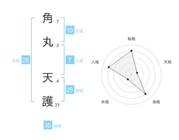 角丸 天護さんの総格は35画の4点!