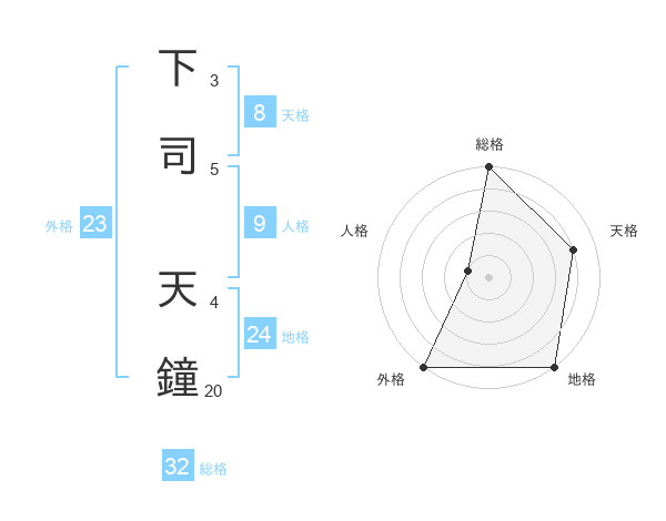 下司 天鐘さんを姓名の画数から五運を鑑定