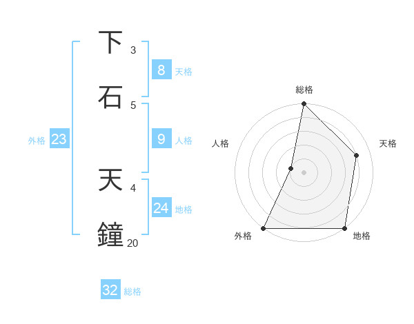 下石 天鐘さんを姓名の画数から五運を鑑定