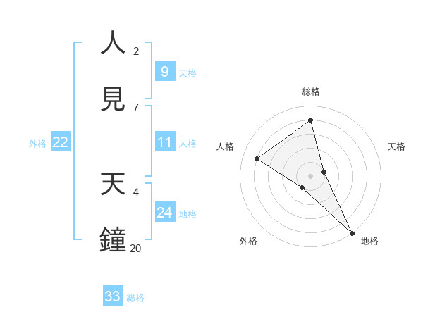 人見 天鐘さんを姓名の画数から五運を鑑定