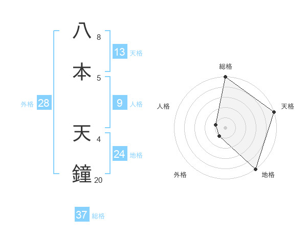 八本 天鐘さんの総格は37画の5点!