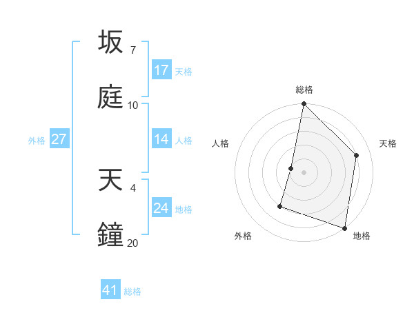 坂庭 天鐘さんの総格は41画の5点!