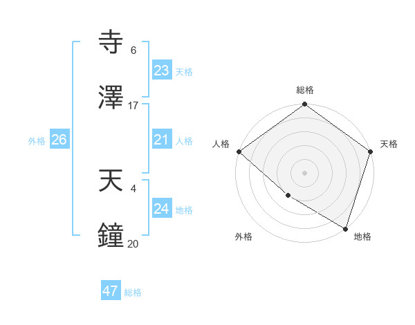 寺澤 天鐘さんの総格は47画の5点!