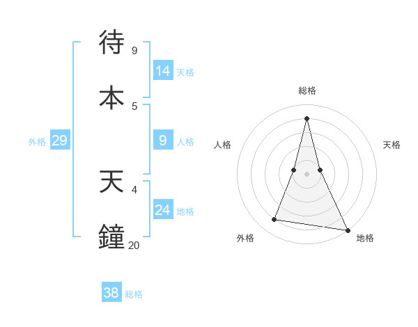 待本 天鐘さんを姓名の画数から五運を鑑定
