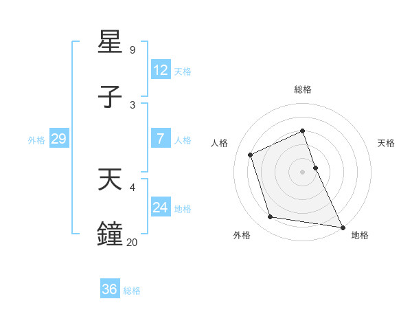 星子 天鐘さんの総格は36画の3点!