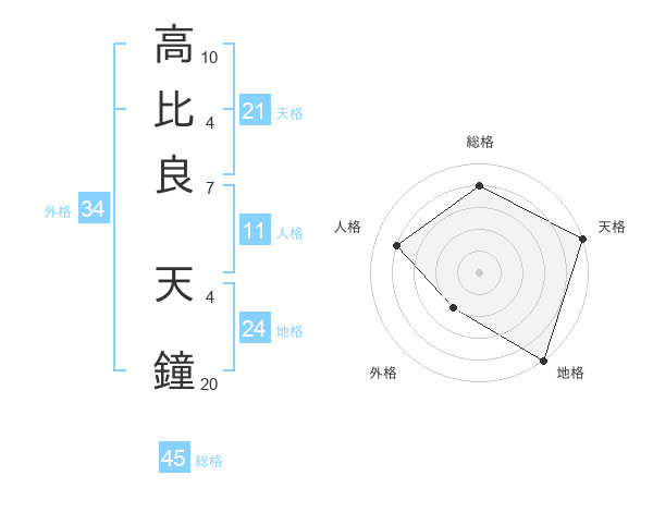 高比良 天鐘さんの総格は45画の4点!