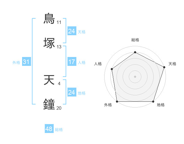 鳥塚 天鐘さんを姓名の画数から五運を鑑定