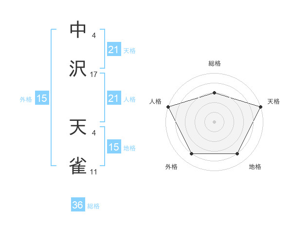 中沢 天雀さんの天格は21画の5点!