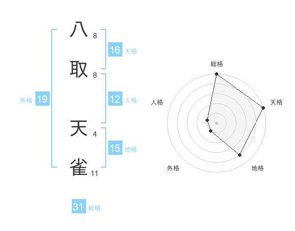 八取 天雀さんの天格は16画の5点!