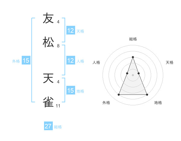 友松 天雀さんの外格は15画の4点!