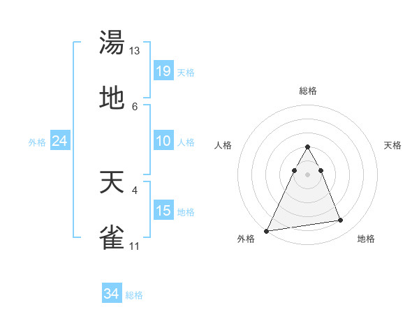 湯地 天雀さんの総格は34画の2点!
