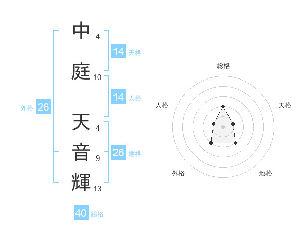 中庭 天音輝さんを姓名の画数から五運を鑑定