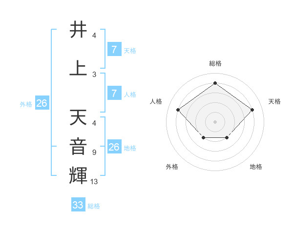 井上 天音輝さんの総格は33画の4点!