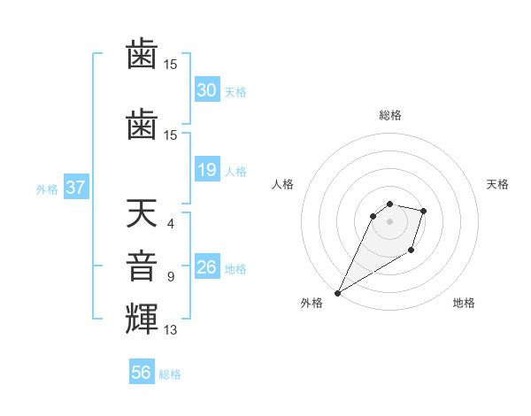 歯歯 天音輝さんを姓名の画数から五運を鑑定