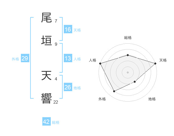 尾垣 天響さんを姓名の画数から五運を鑑定