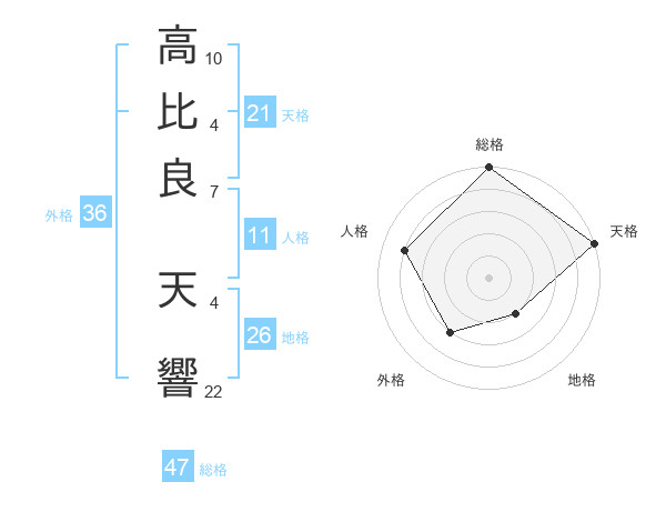 高比良 天響さんの総格は47画の5点!