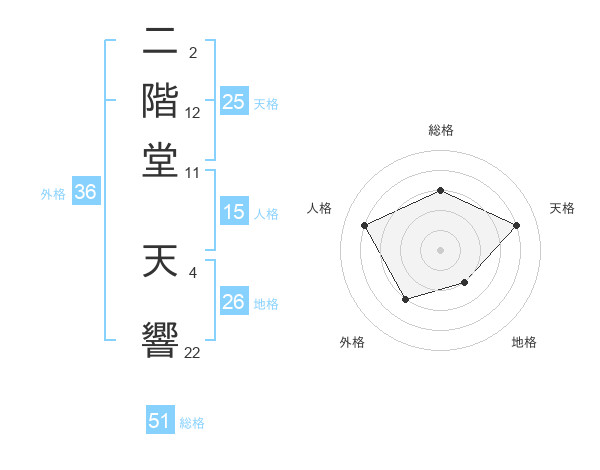 二階堂 天響さんの総格は51画の3点!