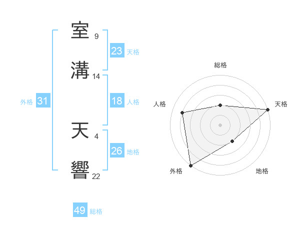 室溝 天響さんの外格は31画の5点!
