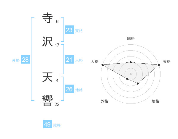 寺沢 天響さんの総格は49画の2点!