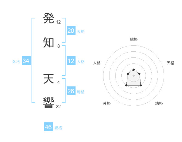 発知 天響さんの総格は46画の1点!