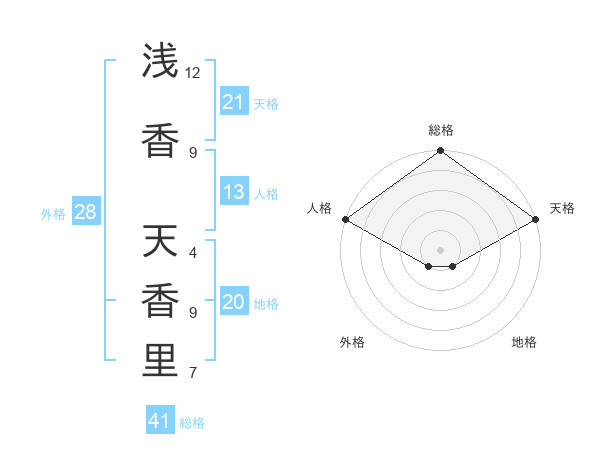 浅香 天香里さんを姓名の画数から五運を鑑定