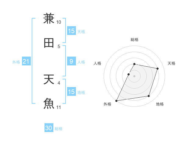 兼田 天魚さんの総格は30画の2点!