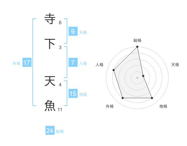 寺下 天魚さんを姓名の画数から五運を鑑定