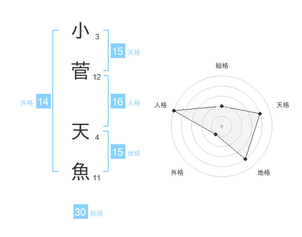 小菅 天魚さんの総格は30画の2点!