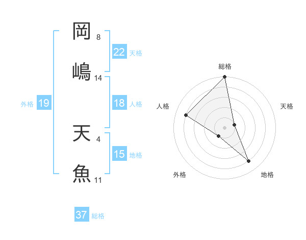 岡嶋 天魚さんを姓名の画数から五運を鑑定