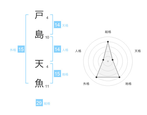 戸島 天魚さんを姓名の画数から五運を鑑定