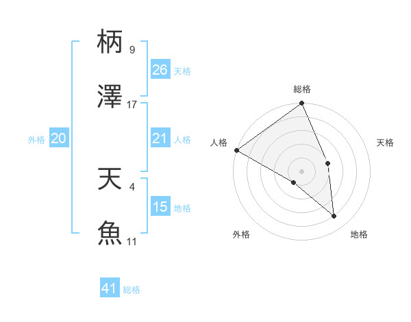 柄澤 天魚さんを姓名の画数から五運を鑑定