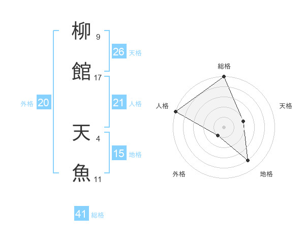 柳館 天魚さんの総格は41画の5点!