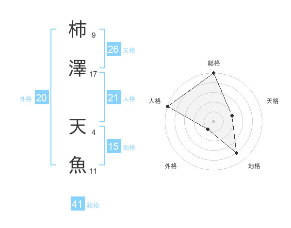 柿澤 天魚さんの総格は41画の5点!