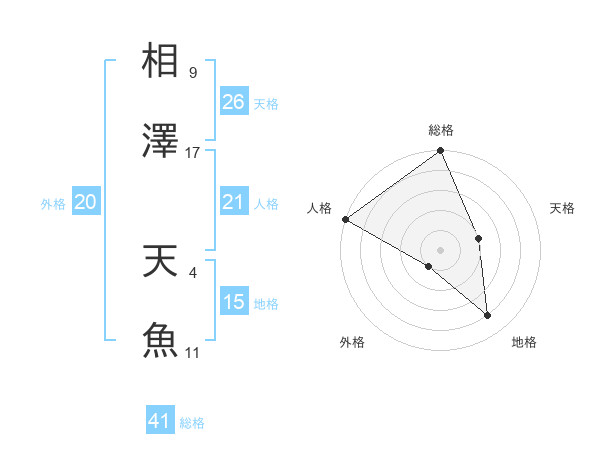相澤 天魚さんを姓名の画数から五運を鑑定