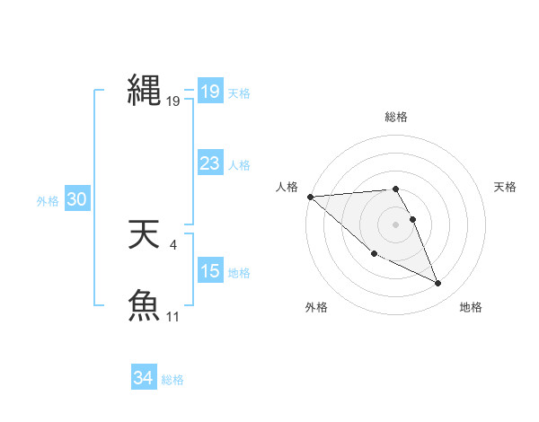 縄 天魚さんの総格は34画の2点!