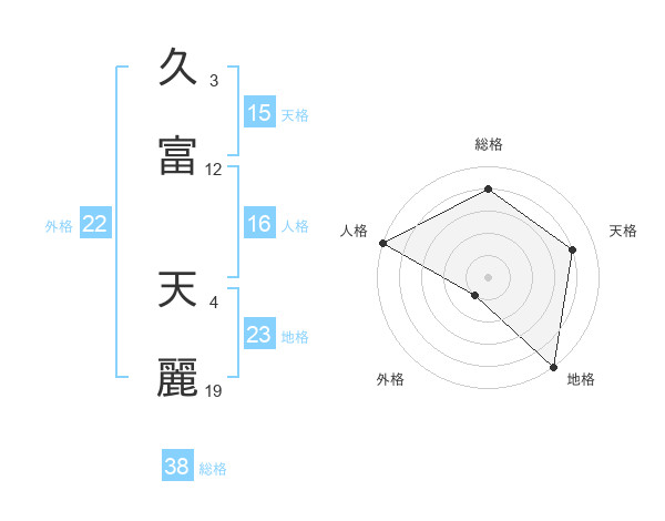 久富 天麗さんの総格は38画の4点!