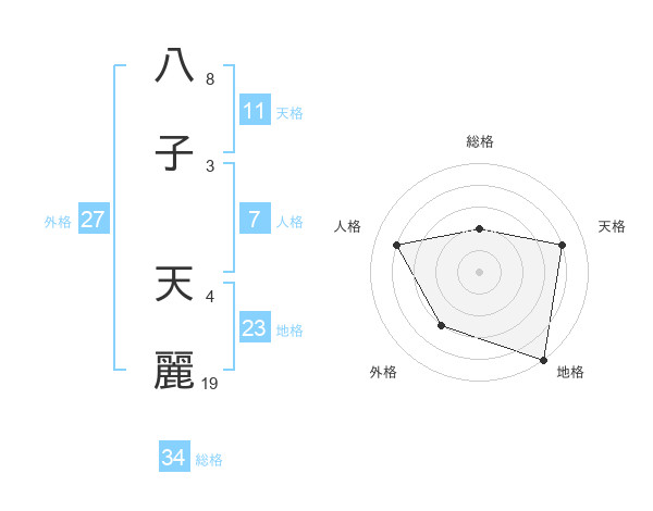八子 天麗さんの総格は34画の2点!