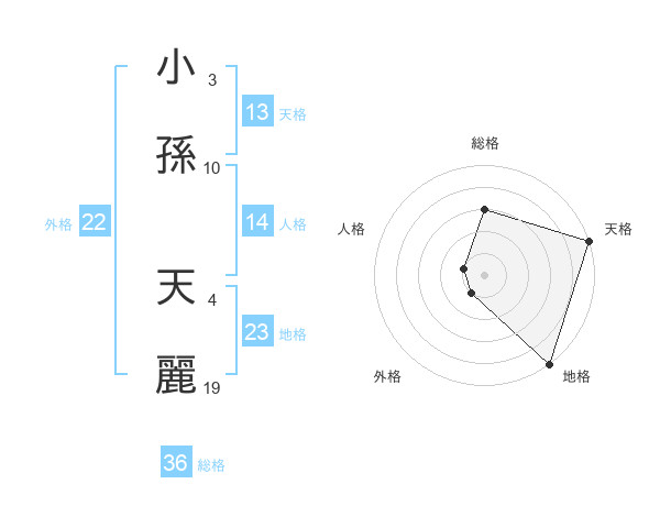小孫 天麗さんの天格は13画の5点!