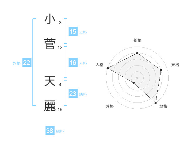 小菅 天麗さんの総格は38画の4点!
