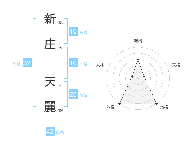 新庄 天麗さんの総格は42画の3点!