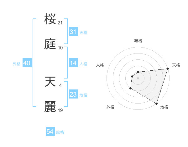 桜庭 天麗さんの総格は54画の1点!