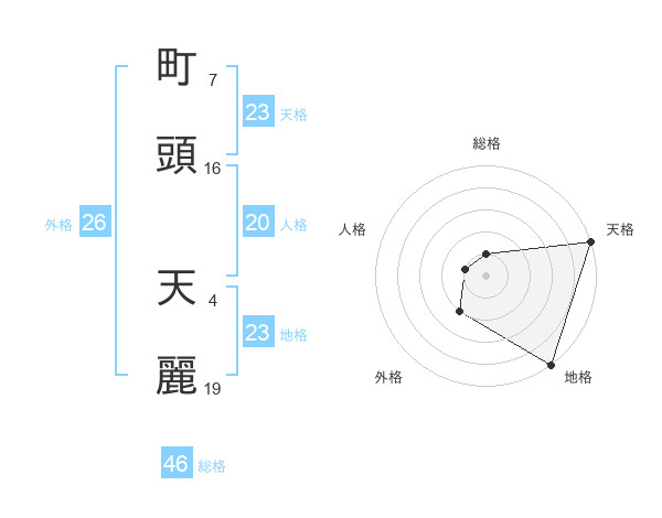 町頭 天麗さんの天格は23画の5点!