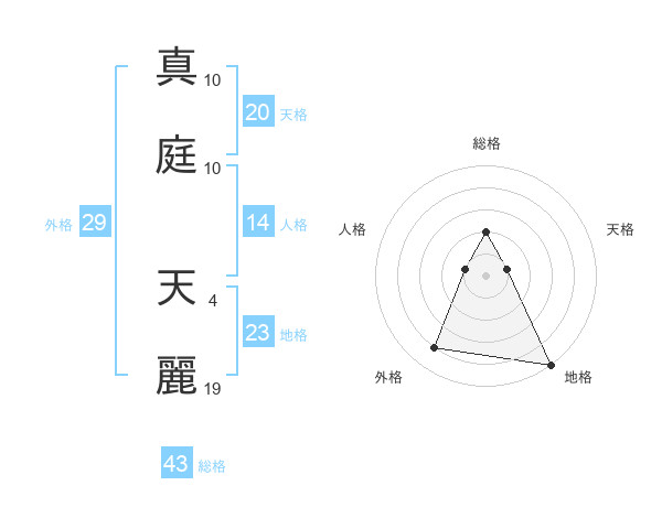 真庭 天麗さんの総格は43画の2点!
