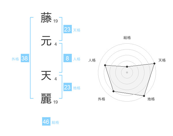 藤元 天麗さんを姓名の画数から五運を鑑定