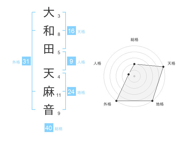 大和田 天麻音さんを姓名の画数から五運を鑑定