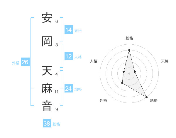 安岡 天麻音さんを姓名の画数から五運を鑑定