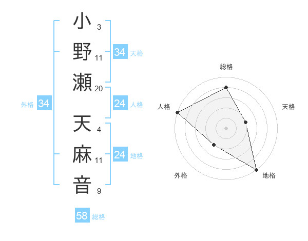 小野瀬 天麻音さんの地格は24画の5点!