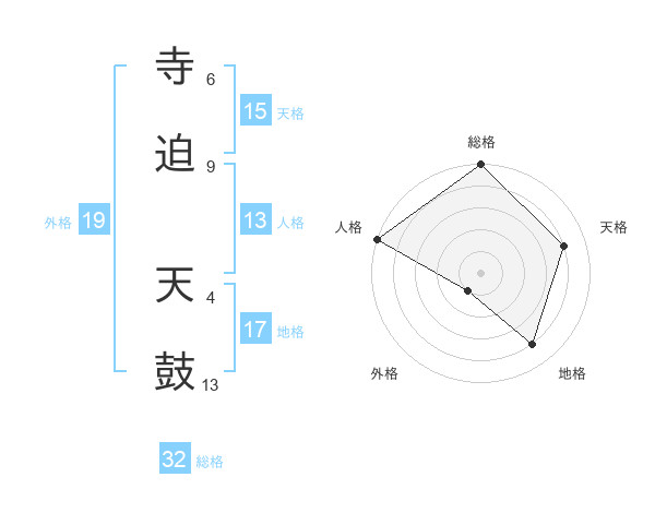 寺迫 天鼓さんの総格は32画の5点!